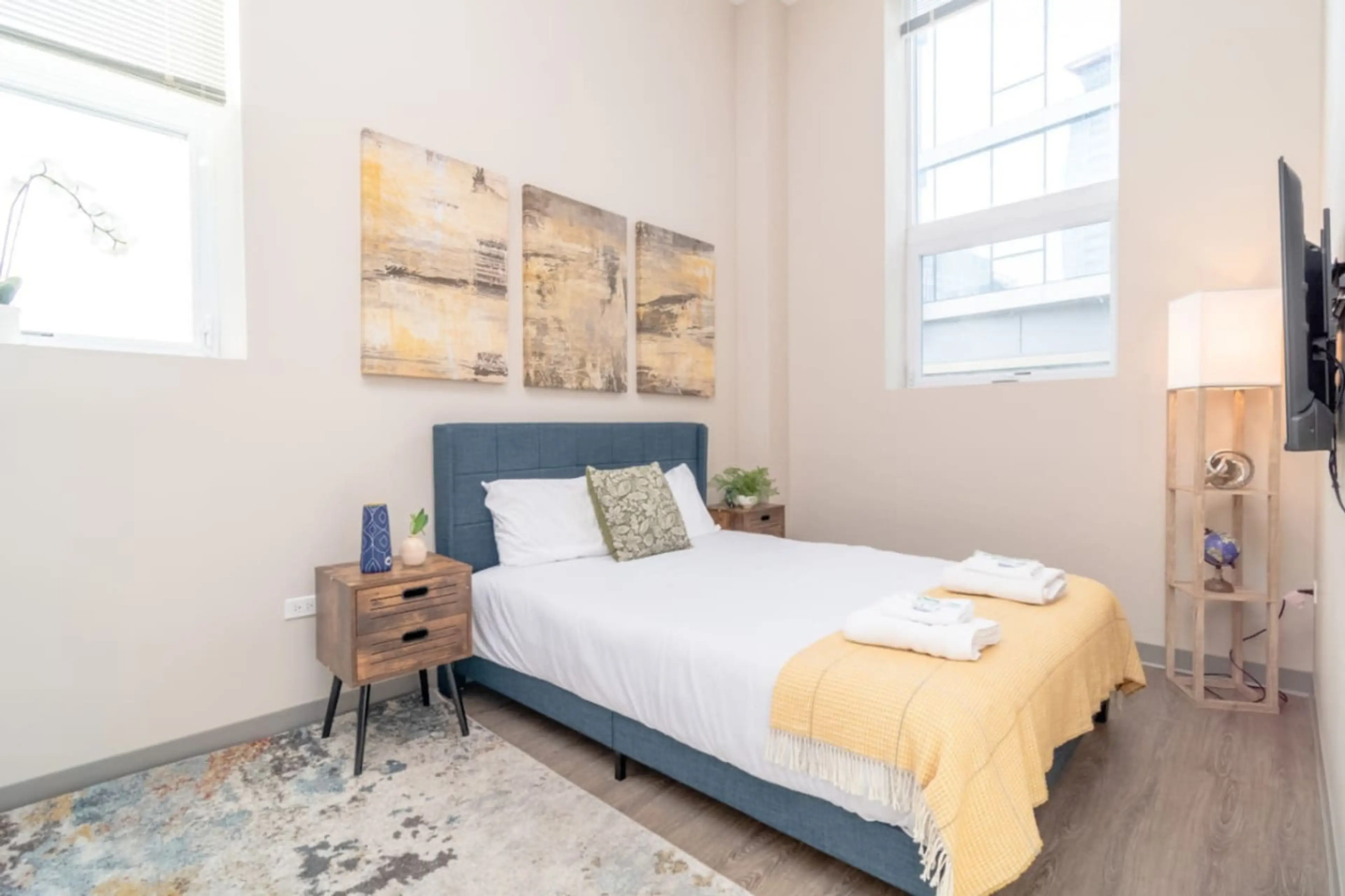 Welcome to the Noor Suite, a bright and beautifully designed 2-bedroom corner suite in Chicago’s South Loop, perfectly located for both city explorers and event travelers. Imagine starting your morning with coffee in a stylish space filled with natural light, then walking to McCormick Place or Wintr...